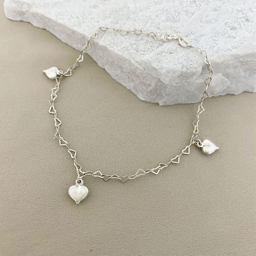 Tornozeleira Elo Coração com Pingentes de Coração em Prata 925
