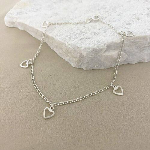 Tornozeleira Elo Grumet Oval com Pingentes de Coração em Prata 925