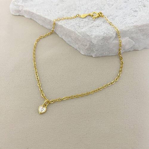 Tornozeleira Elo Português com Pingente Coração Ponto de Luz de Zircônia Banhada a Ouro