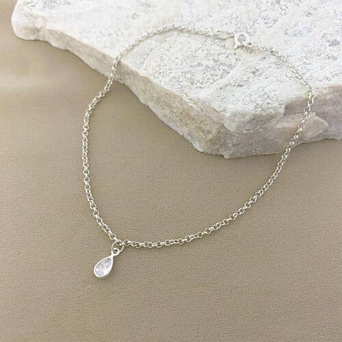 Tornozeleira Elo Português com Ponto de Luz Gota de Zircônia em Prata 925