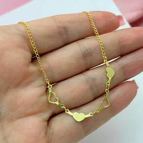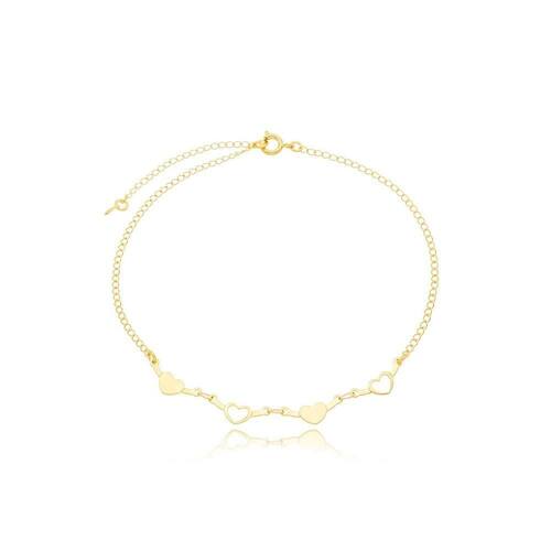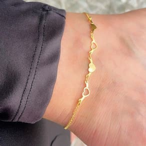 Tornozeleira Elos Corações E Coração Pendurado Banhados A Ouro 18k Tornozeleira Elos Corações e Coração pendurado Banhados a Ouro 18k 24cm - Tornozeleira Elos Corações e Coração pendurado Banhados Ouro 18k Tornozeleira banhada a ouro 18k com design delicado e sofisticado. Possui pequenos elos e fecho ajustável com extensor, proporcionando um encaixe perfeito. O toque especial fica por conta do pingente com corações, que trazem charme e elegância. Ideal para usar no dia a dia ou compor looks mais elaborados. Aposte nesta peça única para destacar o seu estilo com sutileza e sofisticação!