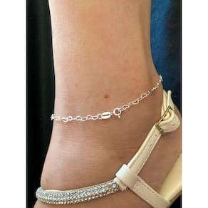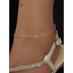 Tornozeleira elos corações prata 925