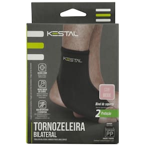 - Detalhamento: Escrita Kestal no calcanhar, tornozeleira oferece compressão, reduz a instabilidade de ligamento e atua no tratamento de tendinites;