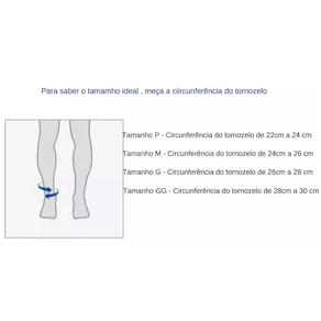 - Tamanho GG: Circunferência do Tornozelo: de 28 cm a 30 cm.