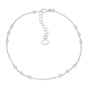 Adicione um pouco de brilho, até o tornozelo. Esta tornozeleira apresenta um estilo clássico de corrente prateada com estações frisadas. É ótimo para looks do dia a dia, desde seus tênis brancos favoritos até saltos altos. A peça vem com um selo de qualidade de prata esterlina “.925” como símbolo da qualidade garantida do produto.