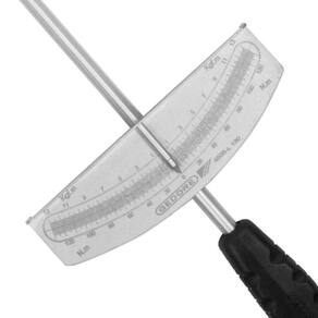 Corpo em aço especial e empunhadura em polímero. Corpo com acabamento niquelado e cromado. O princípio de funcionamento é através da flexão da haste. Suporte da escala em chapa com gravação a laser. Possui proteção contra desvios da vareta na escala. Indicado aplicação de torque no sentido horário (direita) e anti-horário (esquerda). Encaixe quadrado externo 1/2" (12,70 mm) conforme norma DIN 3120. Exatidão de ~6% em qualquer ponto da escala. Caso necessite com certificado de verificação ou calibração, deverá solicitar em especial no pedido de compra. Acondicionado em caixa de papelão.