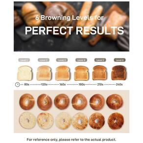 Torradeira 2 fatias Longdeem com 6 níveis de tostagem, desligamento automático, bandeja de migalhas removível, elevação manual e potência de 1000W.Permite ejeção manual