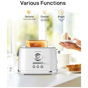 Torradeira Longdeem para 2 fatias com 6 níveis de tostagem, desligamento automático, função de elevação e visualização, bandeja de migalhas removível e enrolador de cabo.Permite ejeção manual