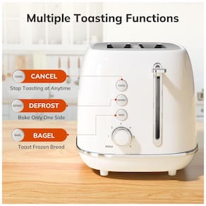 Torradeira retro de aço inoxidável, 2 fatias, com funções de bagel, descongelamento e cancelamento, 6 configurações de sombreamento, slots largos e alavanca pop-up.Permite ejeção manual