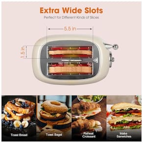 Torradeira Crownful WT 330D com 4 fatias, 900W, funções de bagel, cancelar e descongelar, fendas extra largas de 1,5 pol., ajuste de reaquecimento e 6 níveis de tostagem, bandeja de migalhas removível e tampa para slots.Permite ejeção manual