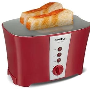 Torradeira Britânia 3x1 Luxred com 7 níveis de tostagem, funções de descongelar, reaquecer e cancelar, capacidade para 2 torradas, bandeja coletora removível, pés antiderrapantes e porta fio.Permite ejeção manual