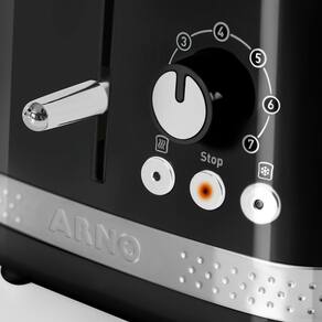 A Torradeira Arno Soleil conta com 7 niveis de tostagem, garantindo torradas perfeitamente douradas, personalizadas para todos os gostos, podendo ser tanto fatias grossas quanto finas.