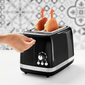 7 níveis de tostagem | Funções: Parar, Descongelar, Reaquecer | Alavanca de alta elevação | Bandeja de migalhas removívelPermite ejeção manual