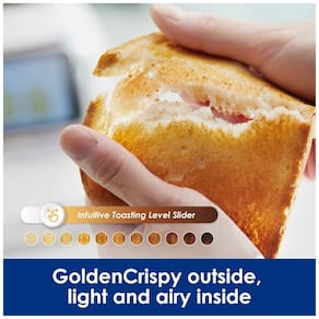Torradeira automática Tineco com tecnologia IntelliHeat, 4 modos de torragem, tela LCD sensível ao toque, elevadores automáticos, construção em aço inoxidável e acabamento em porcelana branca.Permite ejeção manual