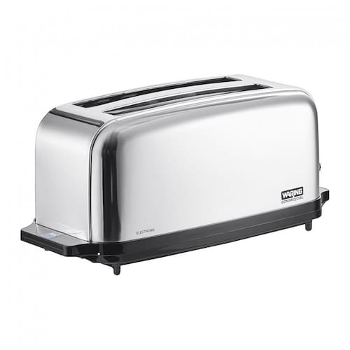 Controle prático por toque. Duas aberturas extralongas. 120V 1500W. Nível de tostagem ajustável. Função de descongelamento para torrar pão congelado. Bandeja removível para migalhas que facilita a limpeza. Torrar de forma eficiente e conveniente com a Torradeira Comercial de 4 Fatias Waring WCT704. Fabricada em aço cromado com acabamento espelhado atrativo, a unidade é uma instalação deslumbrante para qualquer cozinha, garantindo facilidade de operação e se tornando essencial na preparação de alimentos. Possui 4 aberturas para 4 fatias de pão por vez, além de uma variedade de recursos convenientes para simplificar a produção de torradas. Suas duas aberturas extralongas aumentam a versatilidade da torradeira, permitindo torrar duas fatias longas de pão, como o italiano, ou quatro fatias regulares de pão ou muffins ingleses! Ambas as aberturas têm 3,49 cm de largura para acomodar uma variedade de produtos. O nível de tostagem pode ser ajustado usando o seletor rotativo de fácil manuseio, enquanto os controles por toque oferecem três funções especializadas. Além disso, a função de descongelamento descongela e depois torra pão congelado com um toque de botão. Para maior conveniência e versatilidade na cozinha, o pão pode ser reaquecido sem dourar. Você também pode pressionar o botão de cancelamento para interromper a torra e retornar o suporte ao topo. Esta torradeira comercial Waring WCT704 NSF também possui uma grelha de pão auto-centralizadora para garantir que o pão em fatias finas seja torrado ou aquecido de forma uniforme. Uma bandeja removível para migalhas permite uma remoção fácil das mesmas.