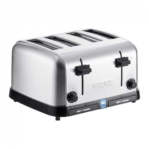 Procurando pela melhor torradeira de quatro fatias para o seu restaurante? A torradeira Waring WCT708 é a escolha perfeita! Com capacidade para torrar até 4 fatias de pão de uma só vez, em diferentes níveis de dourado, esta torradeira é ideal para o seu negócio. Suas amplas aberturas acomodam pães grossos e são fáceis de serem operadas por qualquer funcionário ou cliente. Esse modelo conta com controles de douramento separados para cada par de aberturas, permitindo que você prepare múltiplos pedidos ao mesmo tempo, chegando a até 225 fatias por hora. Sua durável estrutura de aço cromado escovado garante longa vida útil, com acabamento limpo e profissional. As quatro generosas aberturas desta torradeira Waring medem 3,5 x 13 cm, ideais para bagels e fatias de pão. As quatro prateleiras auto-centrantes garantem um tostado uniforme e resultados perfeitos. Para facilitar a limpeza, bandejas removíveis para migalhas estão inclusas para cada par de aberturas.