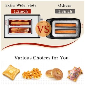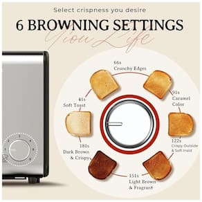 Torradeira YIOU de 2 fatias em aço inoxidável com 6 níveis de tostagem, funções de bagel, descongelar, reaquecer e cancelar. Possui slots extra largos e bandeja de migalhas removível.Permite ejeção manual