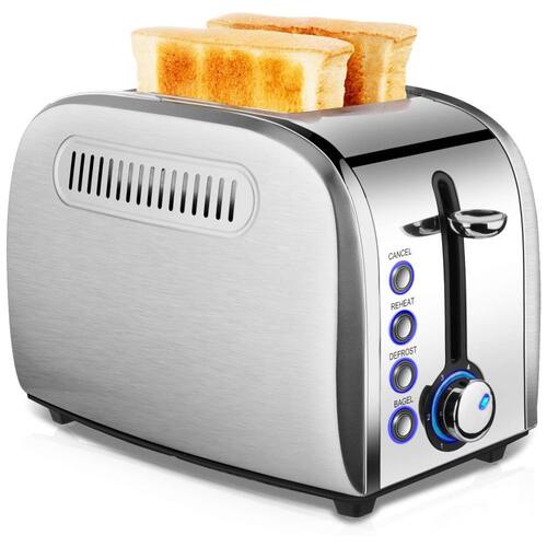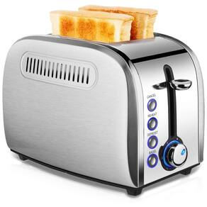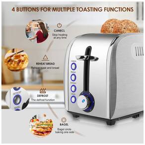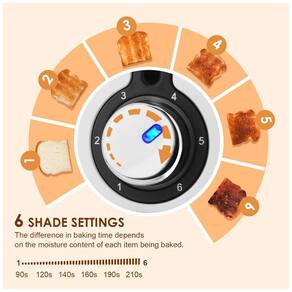 Torradeira de 2 fatias JEWJIO com funções de reaquecer, cancelar, descongelar e bagel. Possui 6 níveis de tostagem, bandeja removível para migalhas e função de dissipação de calor.Permite ejeção manual