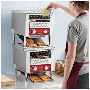 A torradeira de esteira dupla empilhada da Avantco é uma solução eficiente e rápida para sua cozinha comercial. Com capacidade para torrar até 300 fatias de pão por torradeira, por hora, em uma esteira de 10 polegadas com 3 aberturas para uma variedade de pães, bagels e muffins. Seu guia frontal ajuda a carregar alimentos com segurança. Com controle de velocidade da esteira totalmente ajustável e controle de calor com 4 configurações, você pode obter a torrada perfeita. O modo de espera reduz o consumo de energia em períodos de baixa demanda, ao mesmo tempo que reduz o tempo de pré-aquecimento nos horários de pico. Esta torradeira é ideal para qualquer cozinha comercial, sendo rápida, eficiente e fácil de usar. Além de torrar até 600 fatias de pão por hora, ela acomoda diversos tipos de pães, de fatias tradicionais de pão branco a metades de bagels. Possui discagem de velocidade ajustável para níveis de torrada personalizados e entra em modo de espera quando não está em uso para economizar energia. Perfeita para cafeterias, buffets e cafeterias, especialmente durante o horário de pico da manhã!