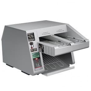 A Torradeira de Esteira Dupla Hatco ITQ17502C Intelligent ToastQwik é equipada com o exclusivo sistema ColorGuard, que monitora e ajusta a velocidade da esteira para resultados consistentes. Possui duas esteiras com sensores integrados, quatro modos de operação, controles programáveis e controles digitais para facilidade de uso.
