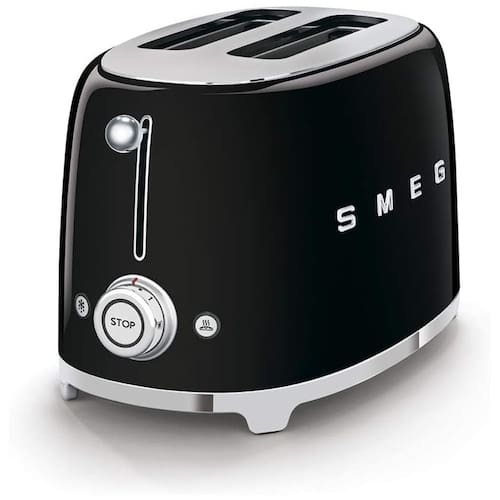 Torradeira Smeg design anos 50, aquece, tosta, descongela e reaquece pães e bagels, racks auto centrantes, 6 níveis de tostagem, bandeja de migalhas removível.Permite ejeção manual