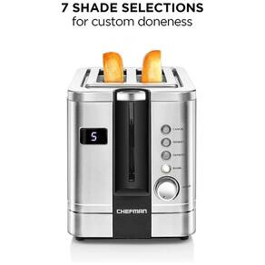 CONTAGEM REGRESSIVA PARA A SUA COZINHA Com um display digital claro e temporizador de contagem regressiva ajustável, não há necessidade de se preocupar em cozinhar demais sua comida. Basta selecionar sua configuração, assistir o cronômetro e esperar por bagels, pão e muito mais SELECIONE SEU TOM Com 4 modos de cozimento com um toque, você pode torrar do seu jeito. Selecione entre 7 tons com controle de discagem intuitivo para escurecimento personalizado de seus favoritos de comida. COZINHE CONVENIENTEMENTE Esta torradeira digital tem dois slots extra largos para que você possa torrar seus pães e bagels de café da manhã com uma brisa. Com o elevador auxiliar e uma função anti encravamento, pode retirar com segurança e facilidade a sua refeição matinal. LIMPE COM FACILIDADE A bandeja de migalhas removível facilita a limpeza rápida após a torra. O acabamento em aço inoxidável limpa facilmente e será exibido lindamente em sua bancada RECURSOS Aprovação cETL com tecnologia de segurança avançada para longa durabilidade. 850 Watts, 120 Volts RJ31 SS V2 D