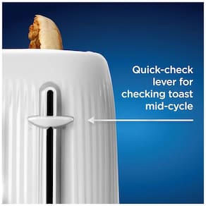A alavanca de verificação rápida permite que você verifique sua torrada no meio do ciclo sem interromper o ciclo de torrada Slots extra largos acomodam uma grande variedade de pães, bagels e muito mais A torradeira aquece rapidamente para que possa desfrutar da sua refeição ou lanche mais cedo Possui 7 configurações de tons de torrada para torradas exatamente do jeito que você gosta Bandeja de migalhas removível torna a limpeza fácil e simples A alavanca de elevação da torrada facilita a remoção da torrada depois de terminada As funções personalizadas Bagel e Frozen ajustam automaticamente o tempo de tostagem para resultados perfeitos uma opção Cancelar permite que você pare de brindar a qualquer momento
