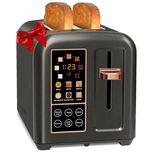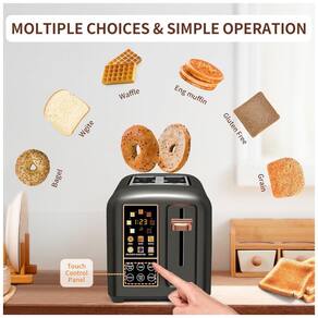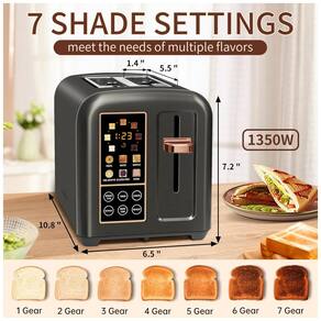 Torradeira elétrica com tela LCD, display digital, 4 funções (cancelar, descongelar, reaquecer, tipo de pão), 7 níveis de potência, 1350W, bandeja de resíduos removível e zenamento de cabo.Permite ejeção manual