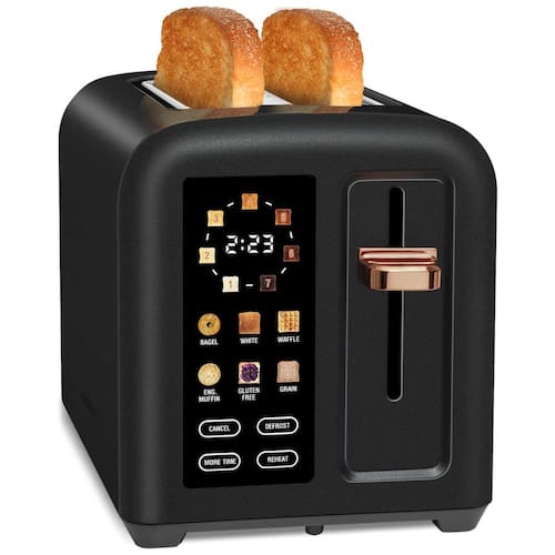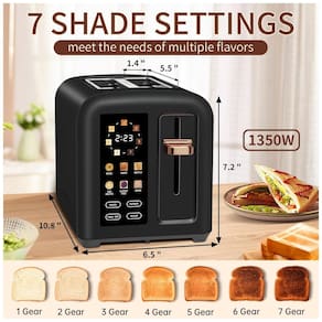 Torradeira elétrica SEEDEEM com tela LCD digital, 4 funções (Cancelar, Descongelar, Reaquecer, Tipo de Pão e Mais Tempo), 7 configurações de sombra, ranhuras extra largas de 3,5cm e bandeja de migalhas removível.Permite ejeção manual