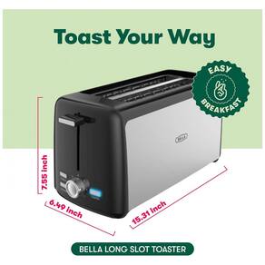 Torradeira elétrica BELLA para 4 fatias com 7 níveis de tostagem, desligamento automático, bandeja de migalhas removível e design compacto. Ideal para diversos tipos de pães.Permite ejeção manual