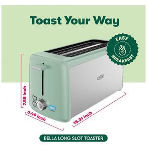 Torradeira elétrica BELLA para 4 fatias com 7 níveis de tostagem, desligamento automático, bandeja de migalhas removível e zenamento de cabos. Ideal para diversos tipos de pão.Permite ejeção manual