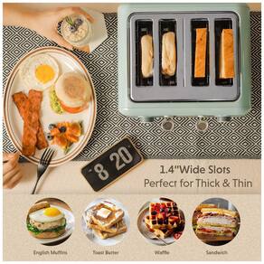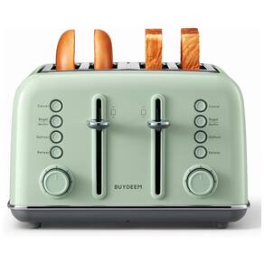 Torradeira elétrica Buydeem DT 6B83G, 4 fatias, com 7 níveis de tostagem, função bagel, muffin, descongelar e reaquecer. Aço inoxidável com design retrô, bandejas de migalhas removíveis e controle independente de temperatura.Permite ejeção manual