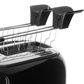 Torradeira Elétrica Ariete para 2 fatias, com 6 níveis de tostagem, 750W de potência, suporte para sanduíches, ejeção automática, corpo em aço inox e bandeja removível de migalhas.Permite ejeção manual