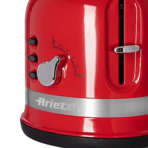 Torradeira elétrica Ariete para 2 fatias, 6 níveis de tostagem, funções de torrar, descongelar e aquecer, suporte para sanduíches, ejeção automática, corpo em aço inox, bandeja removível de migalhas e compartimento para enrolamento de cabos.Permite ejeção manual