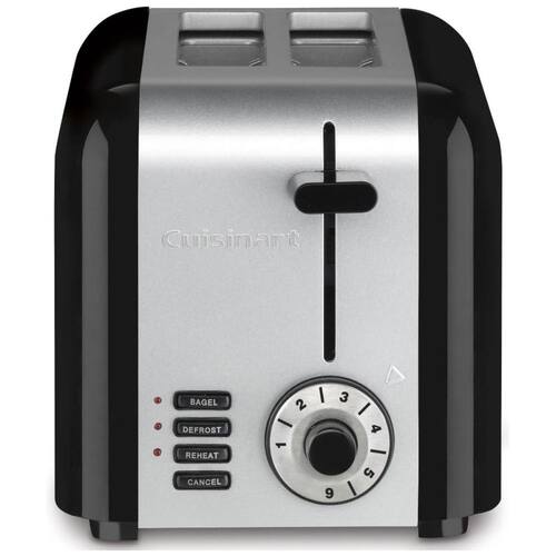 Torradeira elétrica compacta em inox Cuisinart CPT 320, com seletor de sombreamento de 6 configurações e controles de reaquecimento, degelo e bagel.Permite ejeção manual