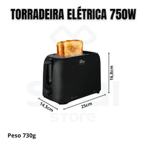 Torradeira Elétrica Kian TO-100 com 750W de potência, 6 níveis de tostagem, função cancelar com botão iluminado, bandeja coletora de migalhas removível e design compacto na cor Petra.Permite ejeção manual
