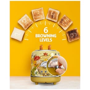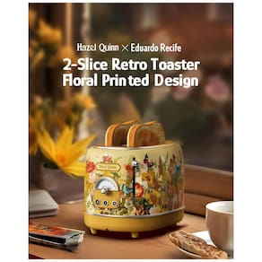 Torradeira elétrica retrô Hazel Quinn de 2 fatias com 6 níveis de tostagem, funções de descongelamento, reaquecimento e cancelamento, slots extra largos, centralização automática e bandeja de migalhas removível.Permite ejeção manual