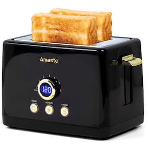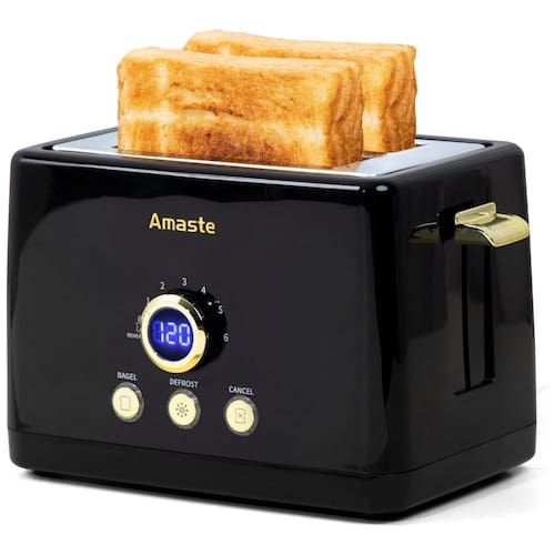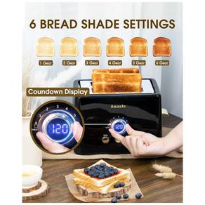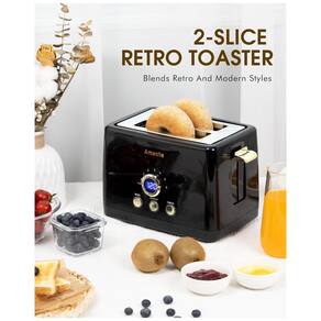 Torradeira elétrica retrô para 2 fatias, com 6 níveis de tostagem, funções de descongelar, reaquecer e bagel, painel digital LED, alavanca de alta elevação e bandeja de migalhas removível.Permite ejeção manual