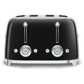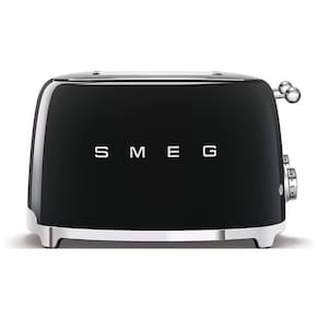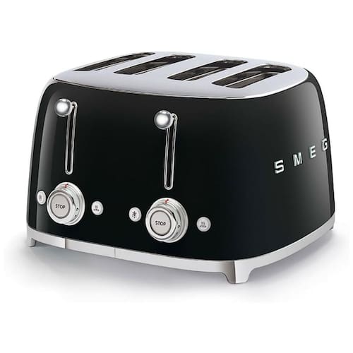 Torradeira elétrica retrô Smeg para 4 fatias, corpo em aço inoxidável revestido a pó, 2 painéis de controle independentes, fatia pop up automática e bandeja de migalhas removível.Permite ejeção manual