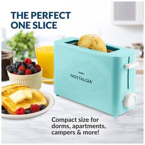 Torradeira Eletroca Retrô My Mini, 1 fatia, com controle de temperatura e função descongelar, ideal para fatias grossas de pão, muffins, bagels e waffles.Permite ejeção manual