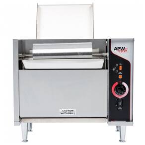 Torradeira grill de esteira vertical, prepara até 865 metades de pães por hora, com 2 folhas de Teflon e esteira para pães. Chapa de aço controlada termostaticamente para tostado perfeito e uniforme.Permite ejeção manual
