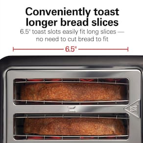 - TORRE FATIAS MAIS LONGAS DE FORMA CONVENIENTE: cansado das ranhuras de torradeira que não cabem nas fatias mais longas de hoje? As fendas mais longas de 6,5 polegadas desta torradeira de fenda longa resolvem esse problema, pois cabem facilmente em fatias longas — não é mais necessário cortar o pão para caber ou virá-lo para terminar de torrar.