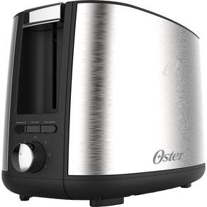 Torradeira Oster Simple Life com 7 níveis de tostagem, funções de descongelar e aquecer, bandeja coletora de migalhas e design em inox.Permite ejeção manual