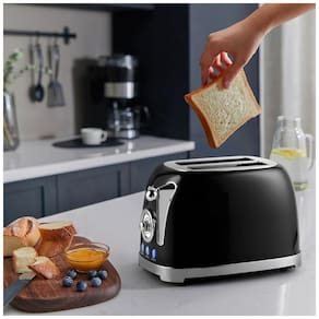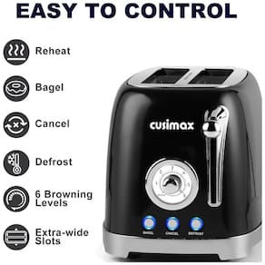 Torradeira retrô CUSIMAX de 2 fatias com 6 níveis de tostagem, funções bagel, cancelar, descongelar e reaquecer, slots extra largos e bandeja de migalhas removível.Permite ejeção manual