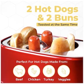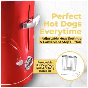 ÓTIMA DEGUSTAÇÃO: Este fogão de cachorro quente torra até 2 de seus cachorros quentes de tamanho normal ou extra recheados favoritos, juntamente com dois pães de cachorro quente ao mesmo tempo. CONFIGURAÇÕES AJUSTÁVEIS: O timer de tostagem ajustável e o botão de parar de torrar permitem que você toste seus cachorros quentes e pãezinhos ao seu nível preferido de cozimento. GAIOLA DE CACHORRO QUENTE E TENAS: Use as mini pinças e gaiolas de cachorro quente incluídas para manter suas mãos seguras ao remover cachorros quentes e pãezinhos da máquina de cachorro quente. BANDEJA DE GOTEJAMENTO E ESPAÇO DO FIO: Deslize para fora a bandeja de gotejamento quando terminar de torrar para facilitar a limpeza. Para zenamento conveniente, a torradeira de cachorro quente e pão também possui uma área para enrolar o cabo do aparelho embaixo da base da unidade, o que elimina cabos soltos. NOSTALGIA: Desde designs inspirados na América do início do século 20 até o apelo atemporal de nossos eletrodomésticos, oferecemos produtos exclusivos, inovadores e divertidos para a família. Nós preservamos o passado, abraçamos o presente e olhamos para o futuro