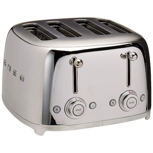 Transforme sua cozinha com a torradeira de 4 fatias da Smeg, uma combinação perfeita entre design icônico dos anos 50 e recursos modernos. Renomada por seus eletrodomésticos com estilo retro, a Smeg criou esta torradeira em colaboração com renomados arquitetos, garantindo estilo e desempenho. Disponível em diversas cores vibrantes, esta torradeira combina com outros eletrodomésticos da Smeg para uma cozinha elegante e harmoniosa. Com controle preciso de douramento e funções versáteis, você pode saborear pães ou bagels perfeitamente tostados a cada vez. Corpo de aço inoxidável revestido a pó, 4 compartimentos grandes, 2 painéis de controle independentes, e bandeja de migalhas removível em aço inoxidável.