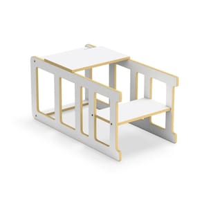 Desenvolvida com os princípios pedagógicos Montessori, a torre 4 em 1: Torre 2 níveis + Cadeirão + Mesinha, promove a independência e a aprendizagem ativa das crianças, adaptando-se às necessidades em cada estágio de crescimento.