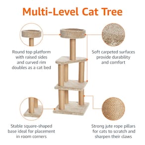 Amazon Basics — Torre de atividades de escalada coberta Cat Tree com arranhadores, vários níveis, grande, 17,7" x 45,9", bege