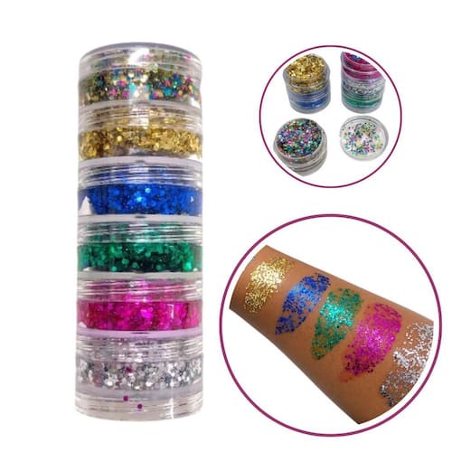 Torre de Gliter Confete em Gel Maquiagem Artistica Festa Torre Glitter de Gel Confete Magia com 06 Cores de 5g cada, sendo: - 01 Dourado; - 01 Azul; - 01 Verde; - 01 Rosa; - 01 Prata; - 01 todas cores misturadas . Proporcionando uma variedade de opções para criar looks deslumbrantes. Tampa de Rosca: Prático e fácil de usar, com tampa de rosca para garantir a durabilidade do produto. Pigmentação Impecável e Duradoura: Aplique com confiança, sabendo que a pigmentação se destaca e permanece vívida ao longo do tempo. Ideal para o Carnaval e outras festividades, a Torre Glitter de Gel Confete Magia é a escolha perfeita para adicionar um toque mágico ao seu visual festivo As Cores Podem Variar de Acordo com As Configurações do Seu Monitor e Podem Sofrer Variação de Cor ou Padrão de Acordo com o Seu Lote. Imagem ilustrativa.