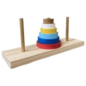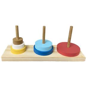 Torre de hanói é um quebra-cabeça que consiste em uma base contendo três pinos, em um dos quais são dispostos alguns discos uns sobre os outros, em ordem crescente de diâmetro, de cima para baixo. O problema consiste em passar todos os discos de um pino para outro qualquer, usando um dos pinos como auxiliar, de maneira que um disco maior nunca fique em cima de outro menor em nenhuma situação. - 29 x 12x 9cm - base em madeira mdf atenção: imagem meramente ilustrativa. Pode ocorrer mudanças no tom da cor para o produto real ou mudanças na embalagem sem aviso prévio por parte do fornecedor/fabricante. Homologação Inmetro: 00886/21-5 Marca: Não Informado